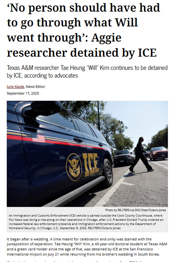 Aggie Researcher Detained by ICE