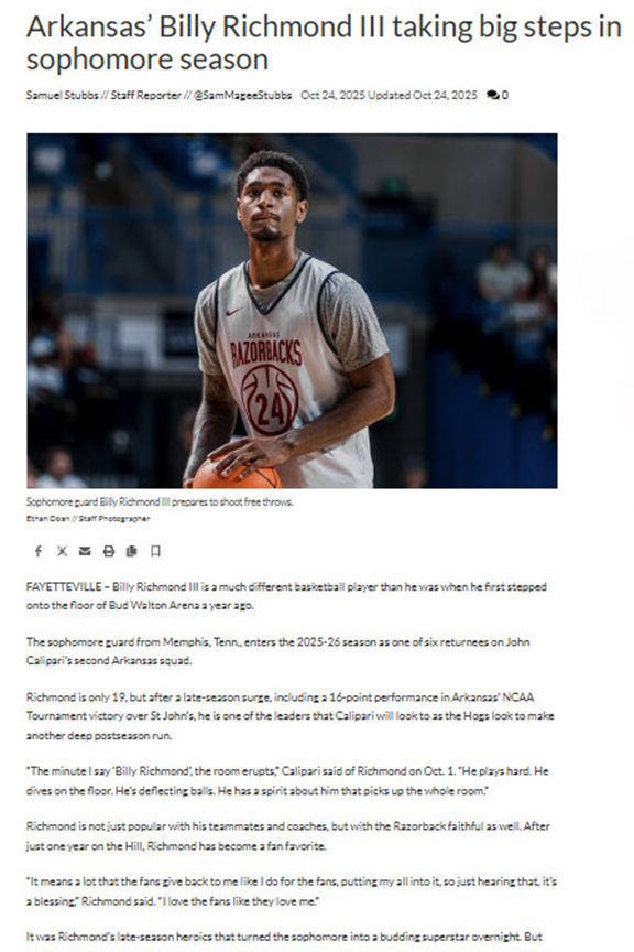 Billy Richmond III Taking Big Steps in Sophomore Season Samuel Stubbs