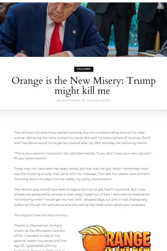 Orange Is the New Misery: Trump Might Kill Me